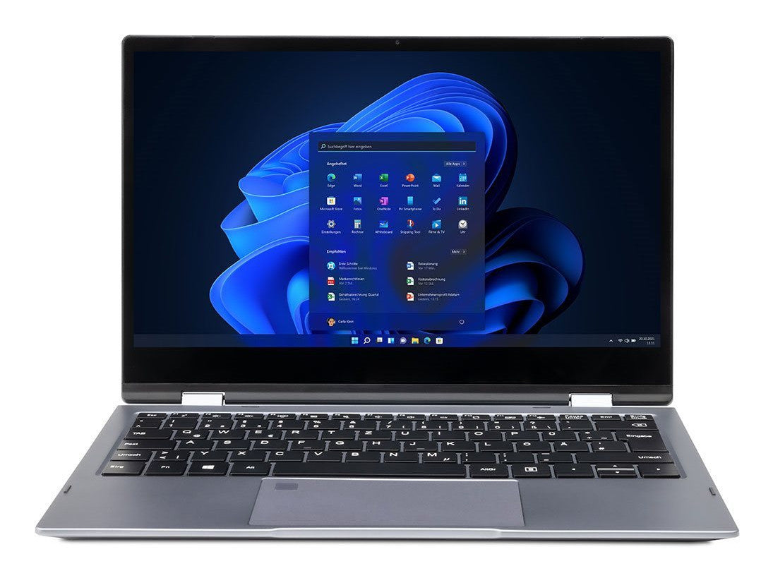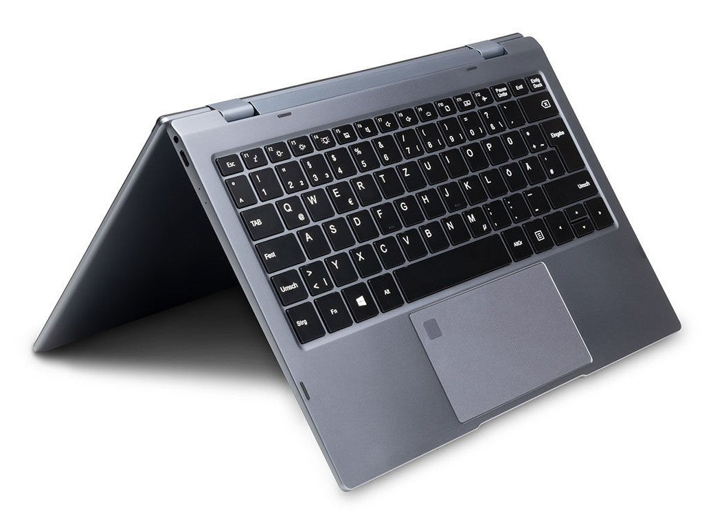 Ordinateur portable convertible 2 en 1 avec écran Full HD Multitouch 13,3" et boîtier en aluminium de haute qualité, y compris capteur d'empreintes digitales. L'écran pivotant à 360° permet de passer de l'ordinateur portable à la tablette en quelques secondes.