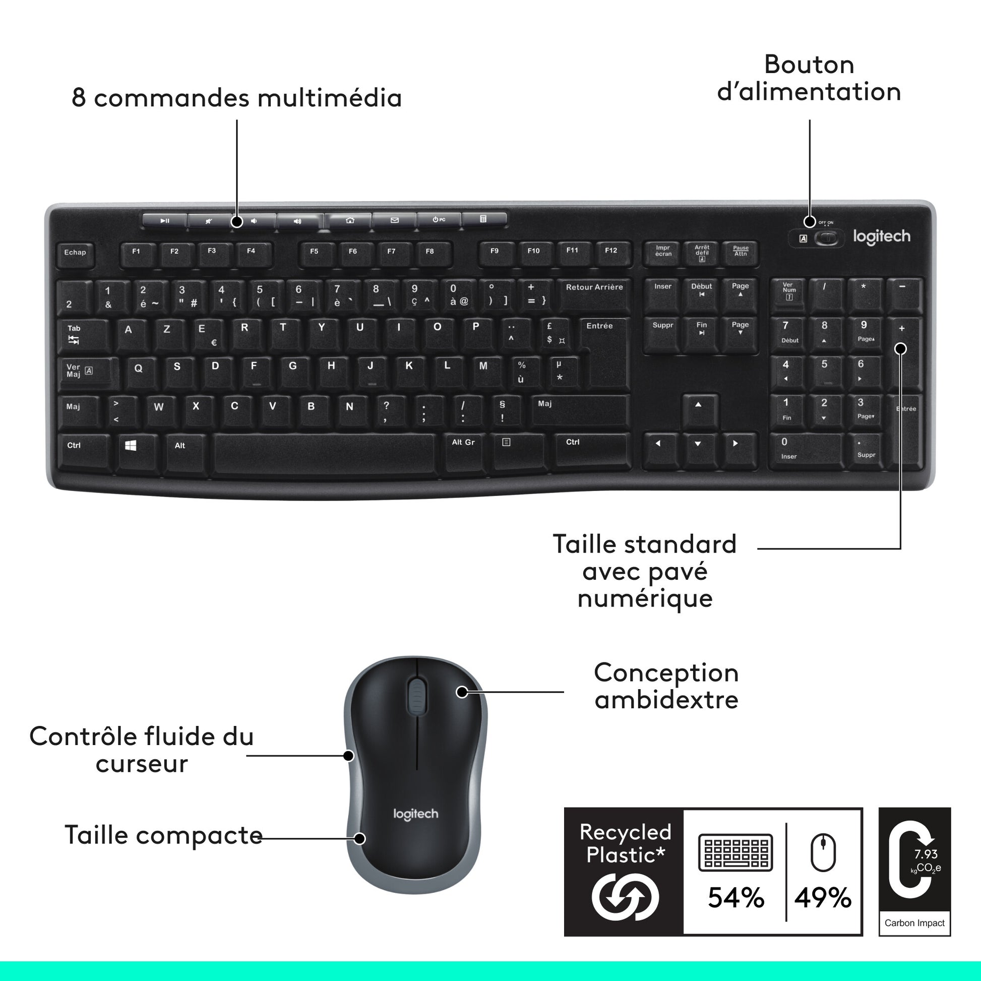Rencontrez tous les besoins des accessoires d'ordinateur avec le Logitech MK270 Combo Sans Fil. Un combo sans fil fiable et un petit récepteur Logitech plug-and-forget. Ce combo clavier et souris comprend la technologie sans fil 2,4 GHz avancée de Logitech, délivrant la fiabilité du filaire avec l'avantage du sans fil. Pile longue durée pour ne plus penser à changer les piles fréquemment.